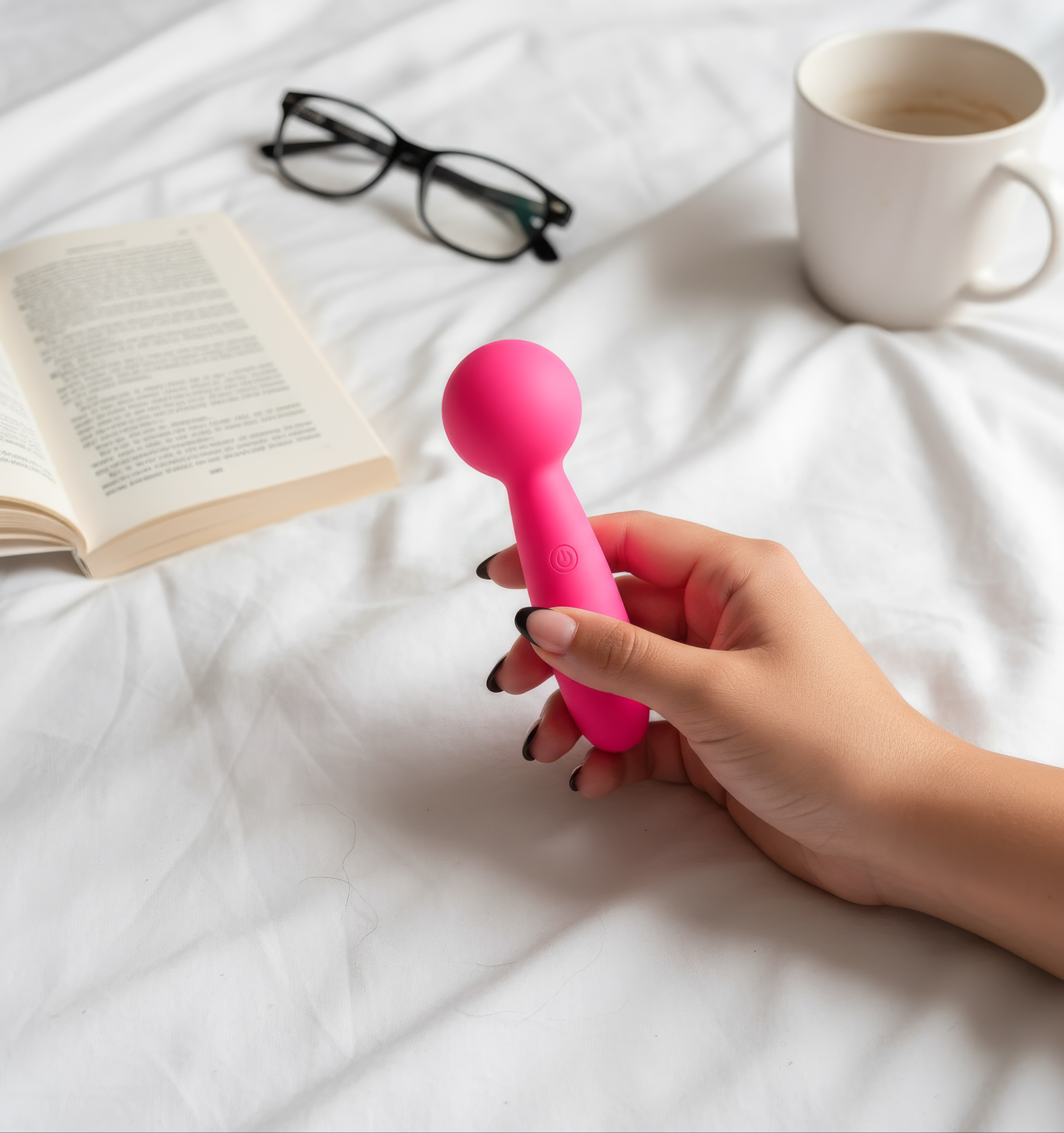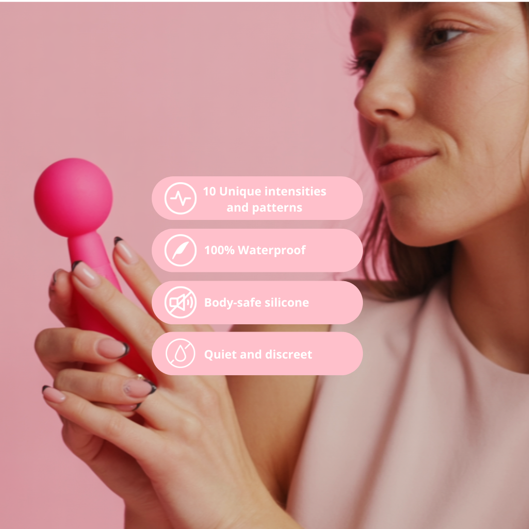 This mini wand uses a high-frequency motor inside the rounded silicone head. The spinning motor drives an off-center weight, creating strong vibrations that the soft head spreads across the skin. Hold the power button for ~2–3 seconds to turn it on, then tap to cycle through the 10 patterns/intensities; long-press again to turn it off. For the best sensation, rest the head lightly on the area—pressing too hard can dampen the vibration. Use externally, optionally with a small amount of water-based lubricant. Clean with mild soap and water after use.